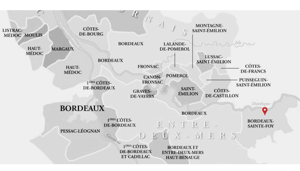 The AOC Sainte-Foy Côtes de Bordeaux is located in the Saint-Emilion region. Covering only 280 hectares, Sainte-Foy Côtes de Bordeaux produces 160,000 hl/year of mainly red wines (90%), sweet white wines, and a small proportion of dry white wines.